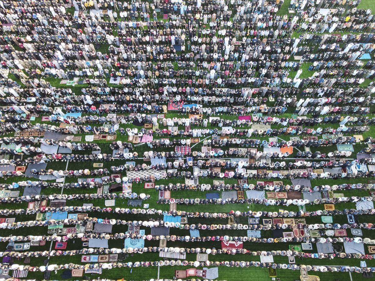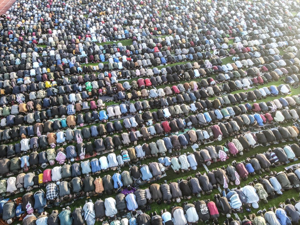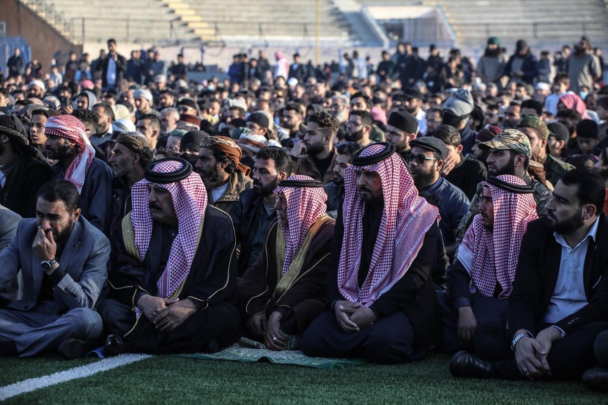İdlib ve kırsalından siviller, İdlib Stadyumu'nda toplandı. Okunan hutbelerde kardeşlik ve ibadetin önemi vurgulanırken huzur ve güven ortamının devamının yanı sıra terör örgütlerinin işgal ettiği toprakların kurtarılması, Esad rejiminin saldırılarında hayatlarını kaybedenler, saldırılar nedeniyle zor duruma düşenler ve depremzedeler için dua edildi.