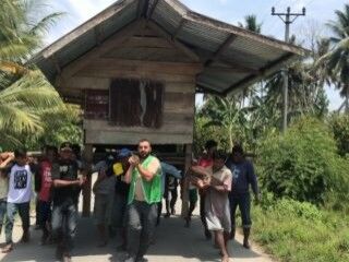 Tsunami ve depremlerin vurduğu Endonezya'da yardım faaliyetlerini yürüten İHH, Sulawesi adası Sigi bölgesinde bir ailenin evini taşımasına yardım etti.