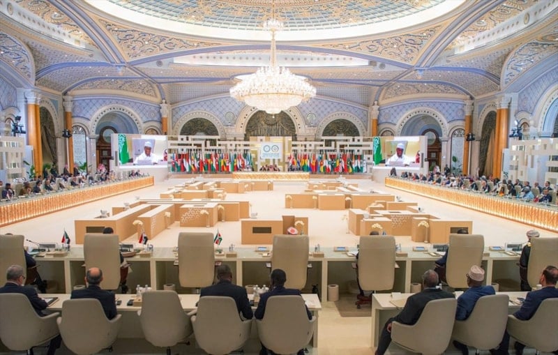 Suudi Arabistan Kralı Selman bin Abdülaziz'in talimatları doğrultusunda 11 Kasım 2023'te Riyad'da düzenlenen İİT-Arap Birliği Ortak Zirvesinin devamı niteliğindeki zirveye Cumhurbaşkanı Recep Tayyip Erdoğan, Filistin Devlet Başkanı Mahmud Abbas, Lübnan Başbakanı Necib Mikati ve Katar Emiri Şeyh Temim bin Hamed Al Sani başta olmak üzere çok sayıda Arap ve Müslüman ülke lideri katıldı.