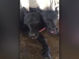 Pakistan'ın Karaçi kentinde bulunan mandıradaki ölü hayvanın ününü duyan herkes ziyaret etmek için çiftliğe akın ediyor. Toplamda dört gözü, iki ağzı, iki burnu ve dört kulağı olan iki kafasına sahip hayvana çiftlik müdürü dahi inanamazken, yıllardır çiftlikte olduğunu belirten adam ömründe hiç böyle bir olay ile karşılaşmadığını söyledi.