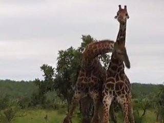 Bunun için kavgaya tutuşan zürafalar karşılıklı güç gösterisinde bulundular. Birbirlerine uzun boyunlarıyla saldıran hayvanlar, karşılıklı olarak rakibini egale etmeye çalıştı.