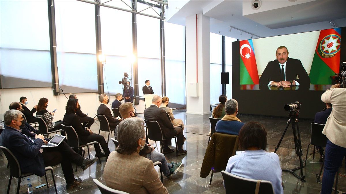 Azerbaycan Cumhurbaşkanı İlham Aliyev Hocalı katliamının yıl dönümünde gerçekleştirilen basın toplantısına, video konferans yöntemiyle bağlandı.