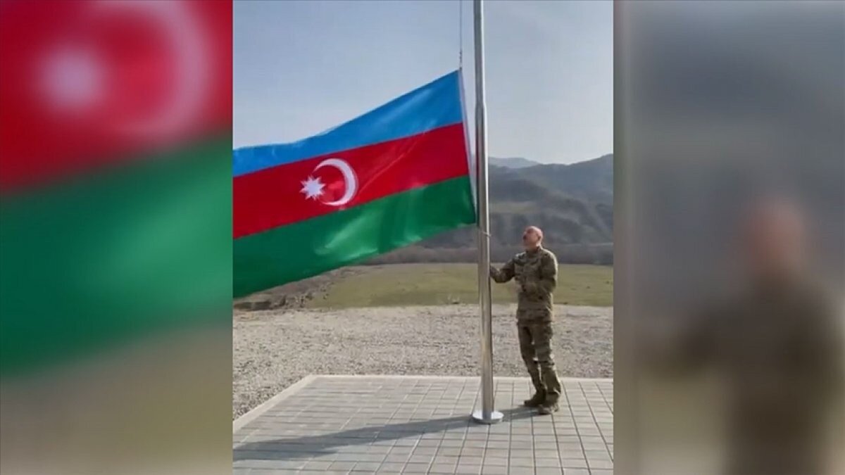AZERBAYCAN BAYRAĞINI GÖNDERE ÇEKTİ