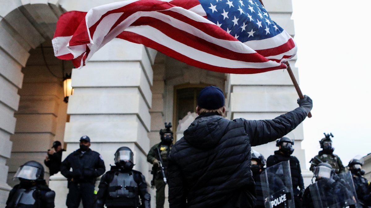 "Demokrasi kuşatma altında" diyen Daily Telegraph, başkent Washington'da eşi benzeri görülmemiş sahnelerin yaşandığını anımsattı.