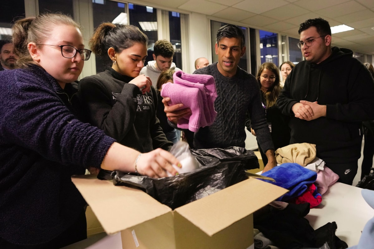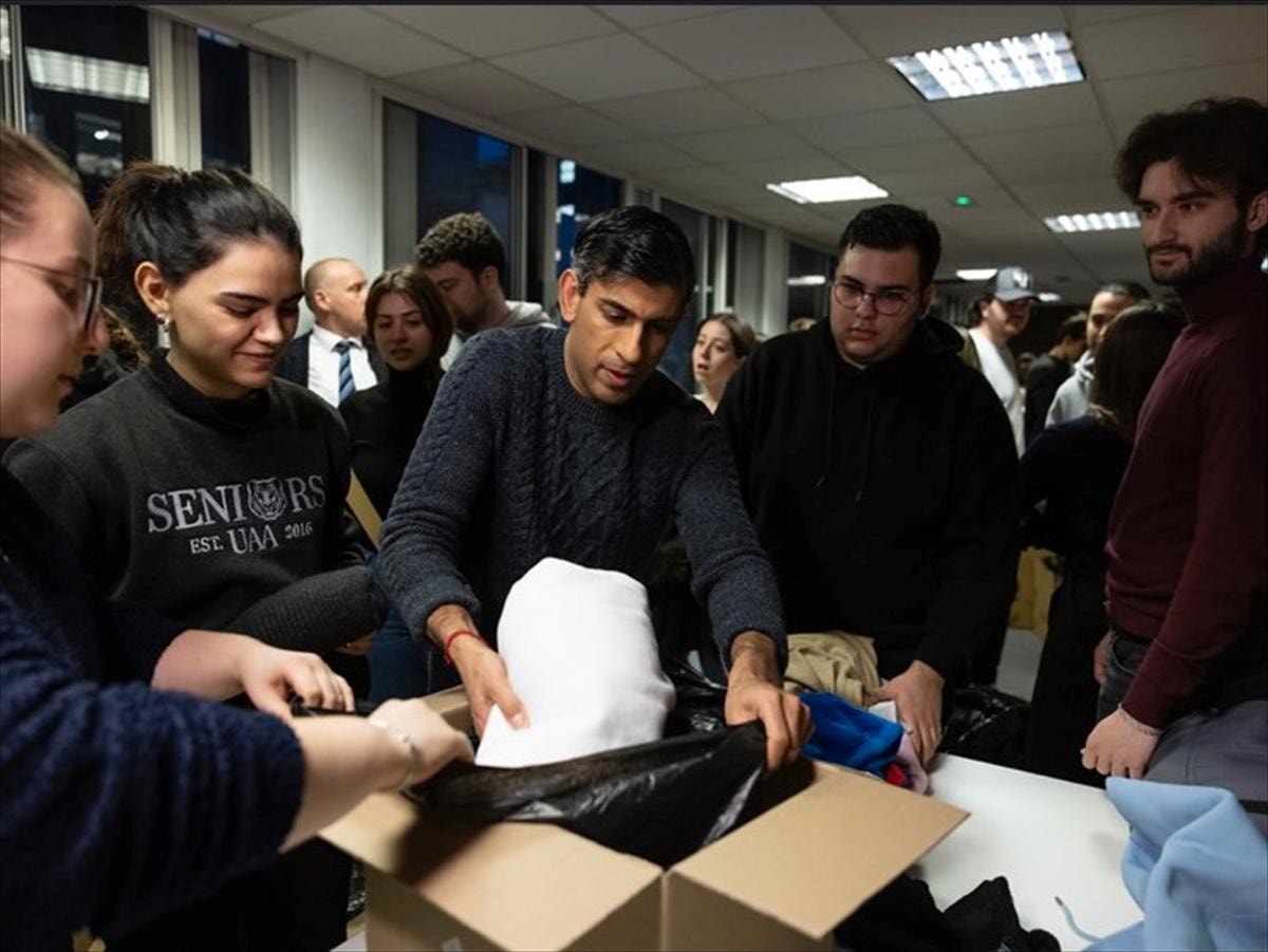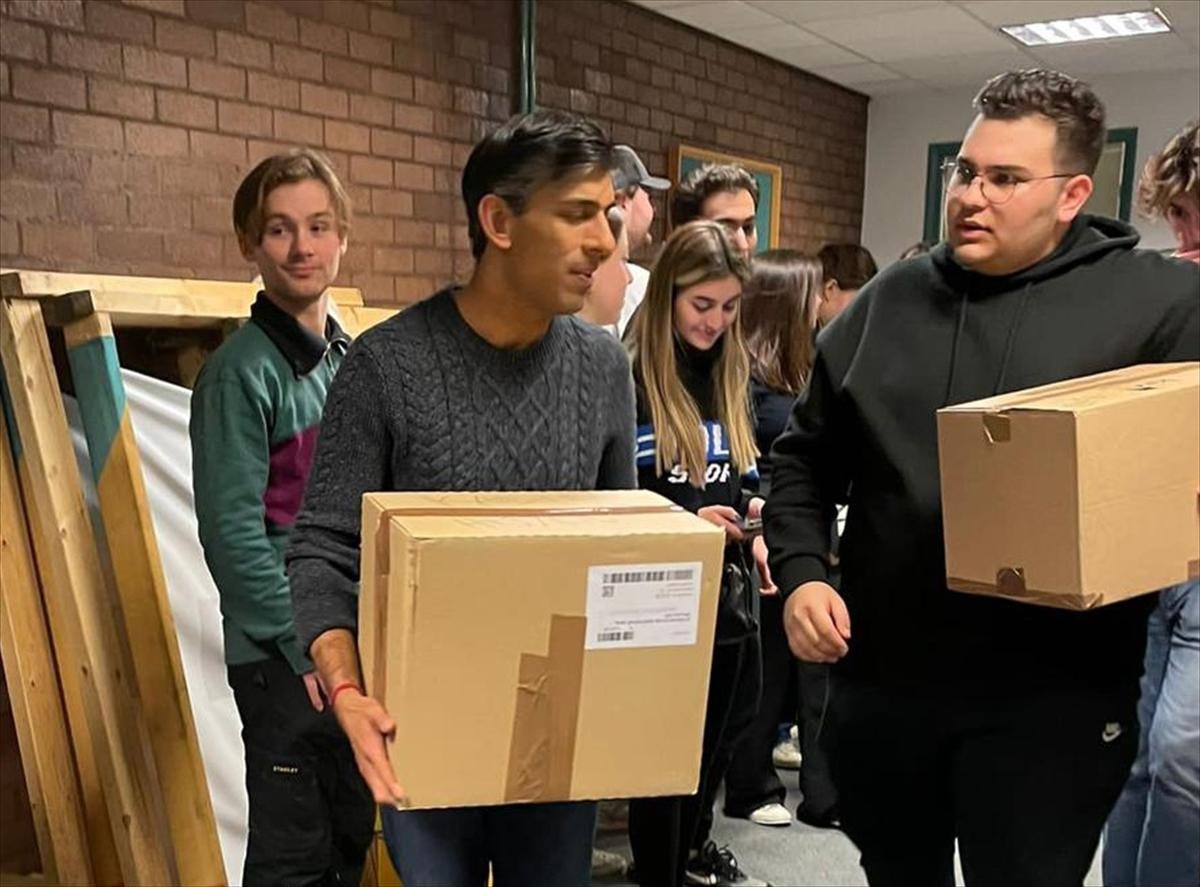 Öğrencilerin yardım malzemelerini tasnif etmesi ve paketlemesine yardım eden Sunak, şapka, atkı ve battaniye bağışı da yaptı. Çalışmalarla ilgili övgüde bulunan Sunak, şöyle konuştu: