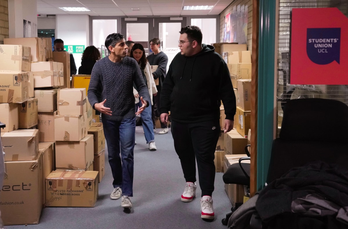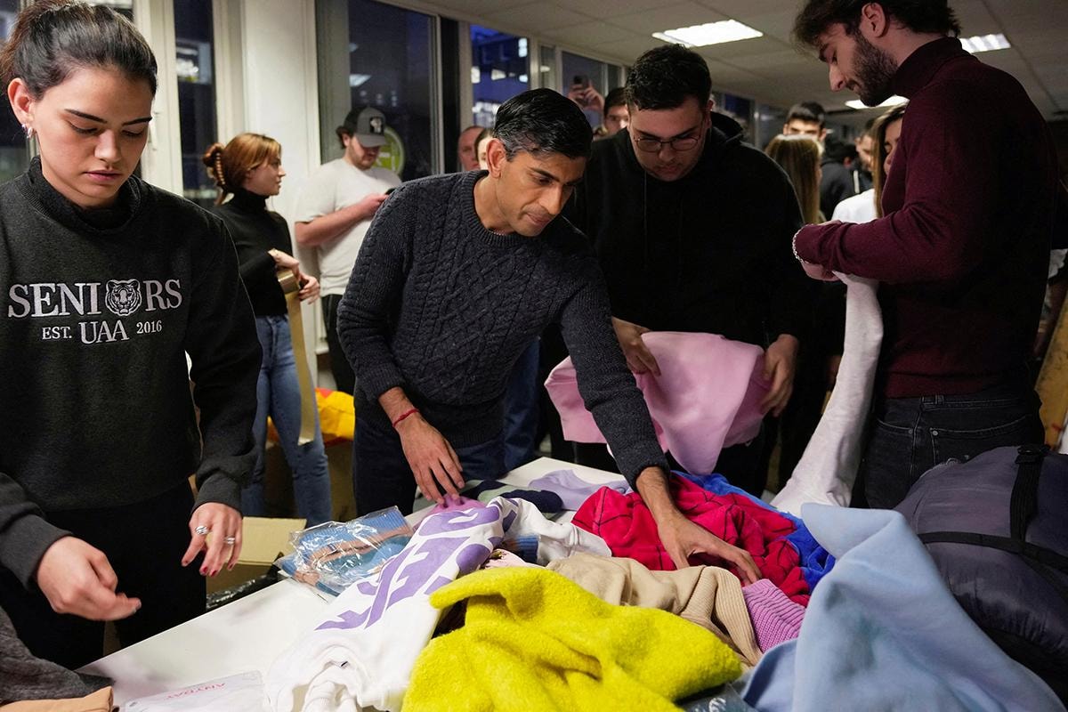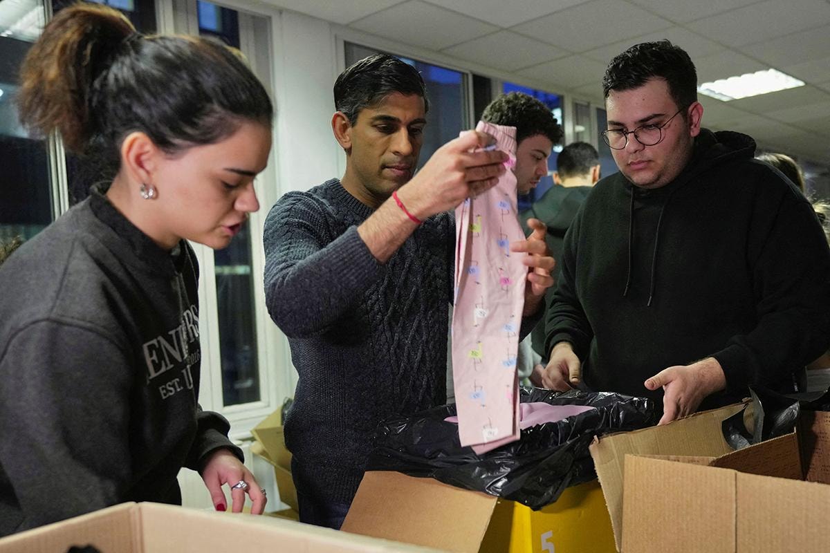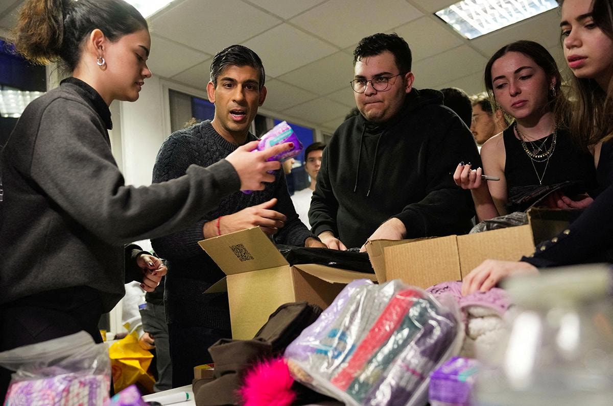 Öğrencilerin yardım malzemelerini tasnif etmesi ve paketlemesine yardım eden Sunak, şapka, atkı ve battaniye bağışı da yaptı. Çalışmalarla ilgili övgüde bulunan Sunak, şöyle konuştu: