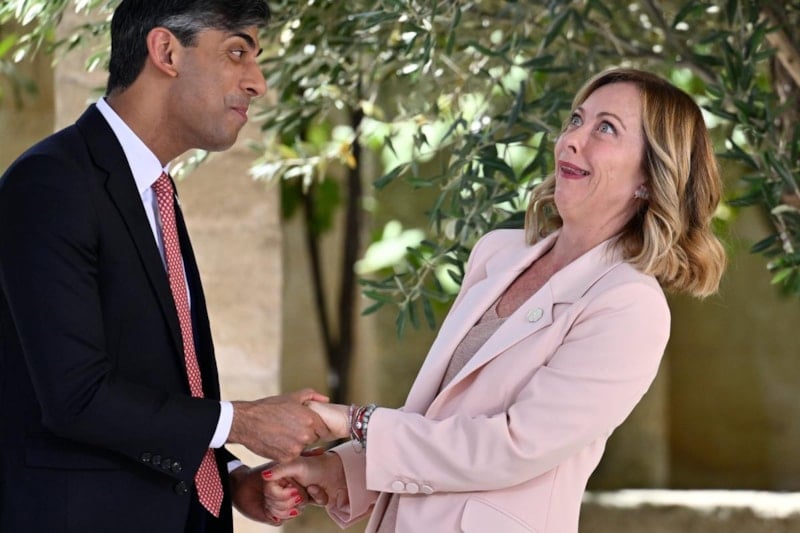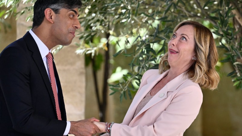 Dünyanın sanayileşmiş 7 büyük ekonomisini bir araya getiren G7 Liderler Zirvesi başlarken, zirveye İngiltere Başbakanı Sunak ve İtalya Başbakanı Giorgia Meloni'nin selamlaşma anları damga vurdu.