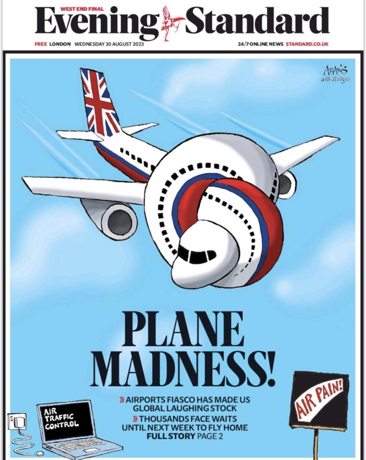 Evening Standard gazetesi, karmaşık hale gelen bir uçak çizimini yayınladığı kapağında, "Uçak cinneti" şeklindeki başlığa yer verdi.