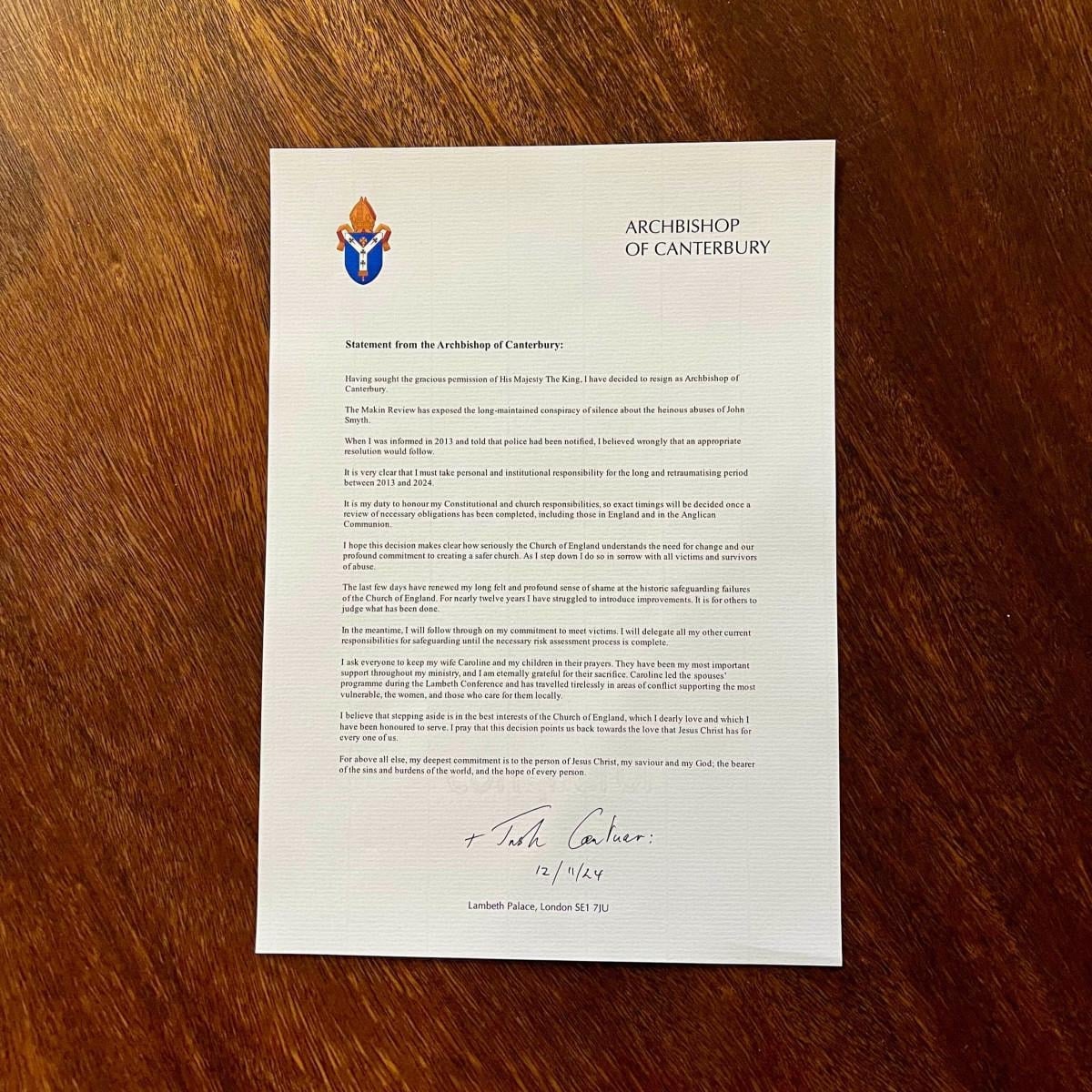 Başpiskopos Welby, istifa kararını alırken, Kilise'nin geçmişteki 'güvenlik hataları' için 'derin bir utanç duyduğunu' ifade etti ve Kilise'nin daha güvenli bir ortam oluşturmak adına köklü değişiklikler yapma taahhüdünde bulundu.