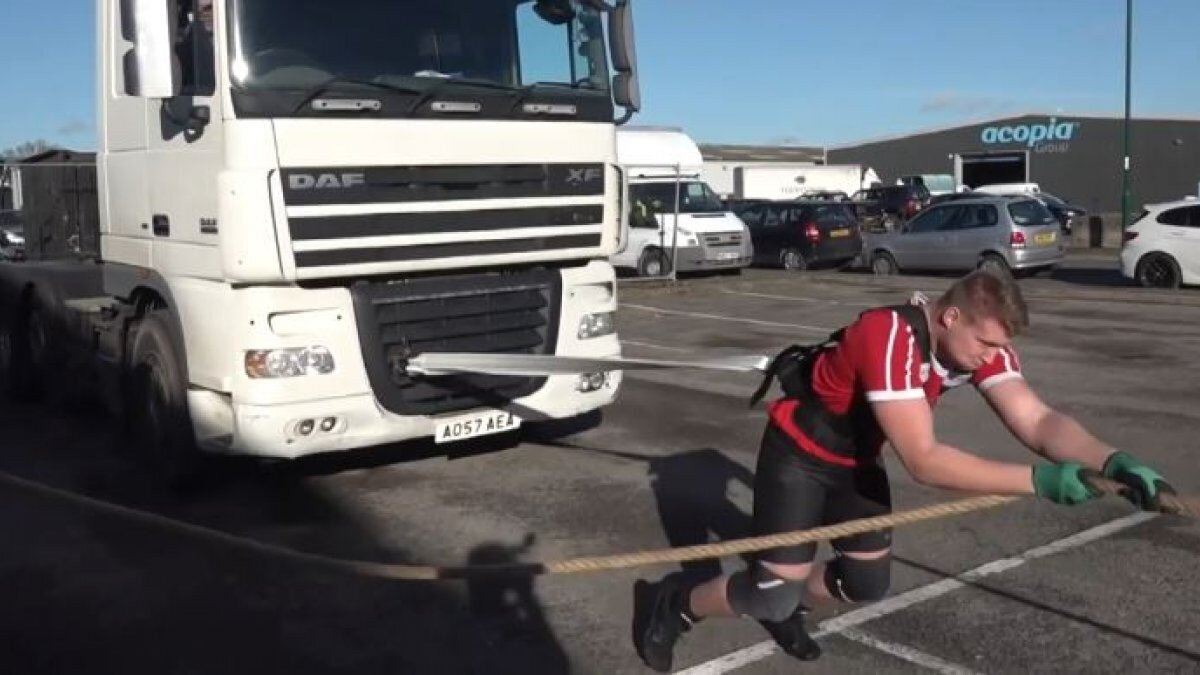 İngiltere'nin başkenti Londra’nın güneybatısındaki Bognor Regis kasabasında yaşayan 17 yaşındaki Jack Wadman, kasabadaki spor salonunun önünde iple 3 ton ağırlıktaki tırı çekti.