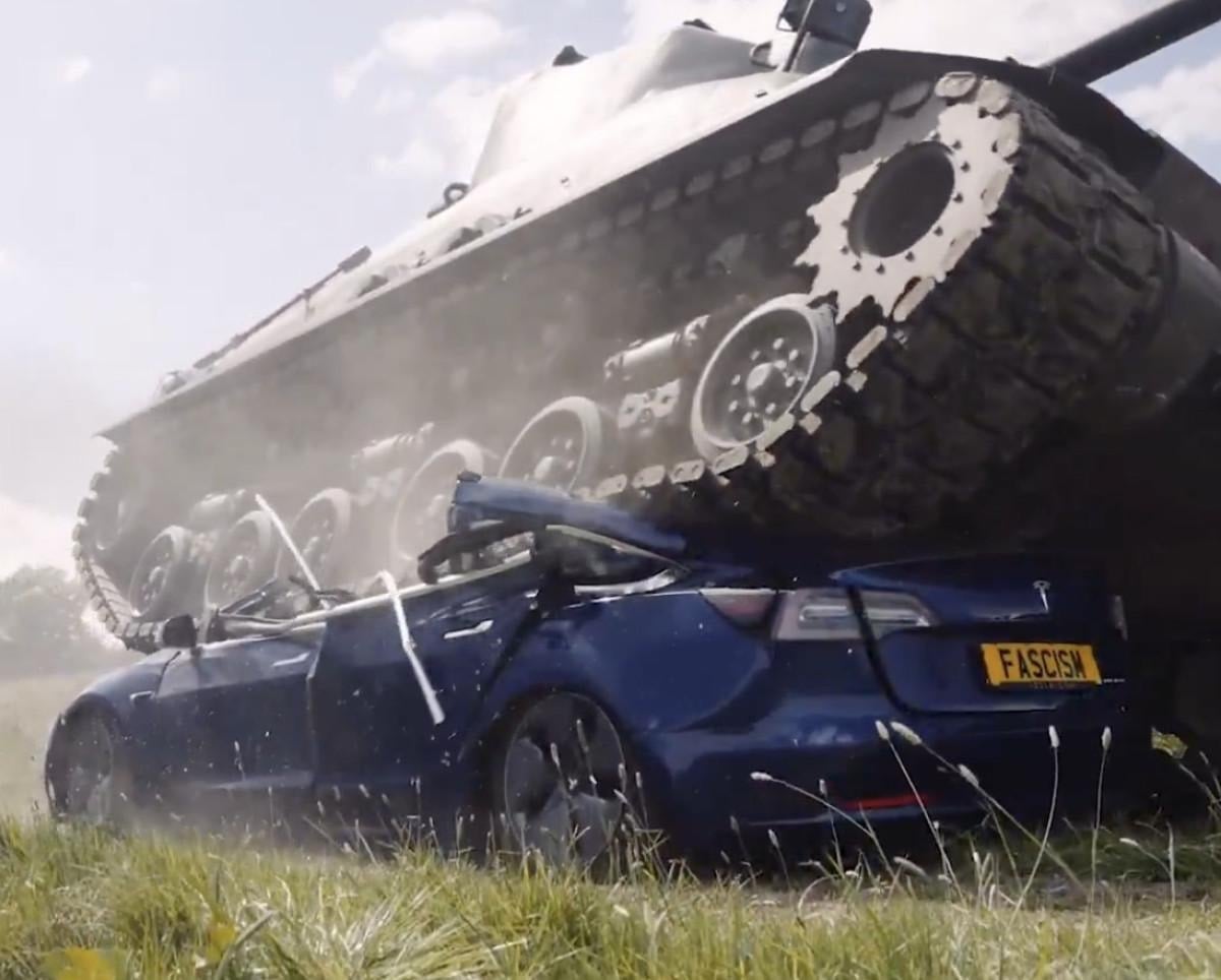 Britanya ordusunda savaştığını söyleyen Ken Turner, 2. Dünya Savaşı'nda kalma Sherman tipi bir tankla Tesla Model 3’ü ezdi.