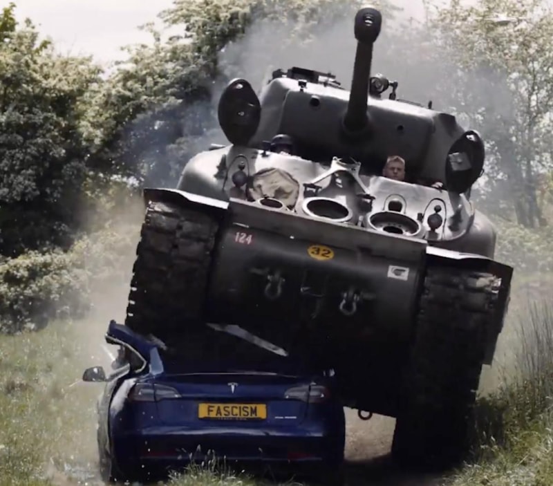98 yaşındaki İngiliz gazisi Ken Turner, Elon Musk’a karşı Sherman tankıyla protesto düzenledi. Tesla marka otomobili ezen gazi, "Faşizmi bir kez yendik, yine yeneceğiz!" dedi.