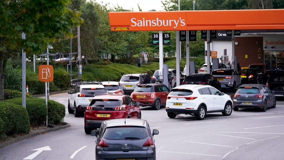 İngiliz basınının paylaştığı görüntülerde, ülkenin farklı noktalarındaki istasyonlarda sürücüler, benzin alabilmek için yoğunluk oluşturdu.