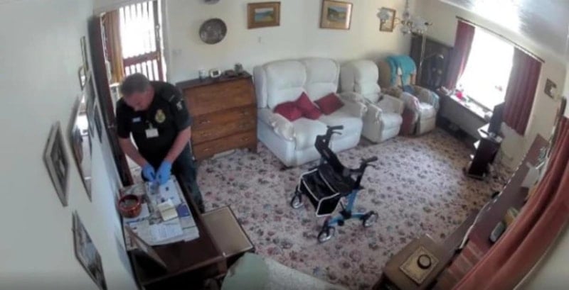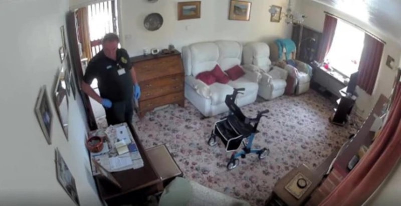 Shrewsbury kentinde evinde kalp krizi geçiren hastaya müdahale eden için evine giden ambulans görevlisi, kadının ölümünden sonra eve tekrar dönerek bulduğu paraları çaldı. O anlar anbean kameraya yansıdı.