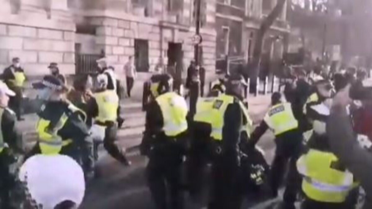 Karantina ve aşı karşıtları ise başkent Londra'da düzenlenen gösteride bir araya geldi. Yürüyüşe geçen göstericilerle polis arasında tansiyon zaman zaman yükseldi.