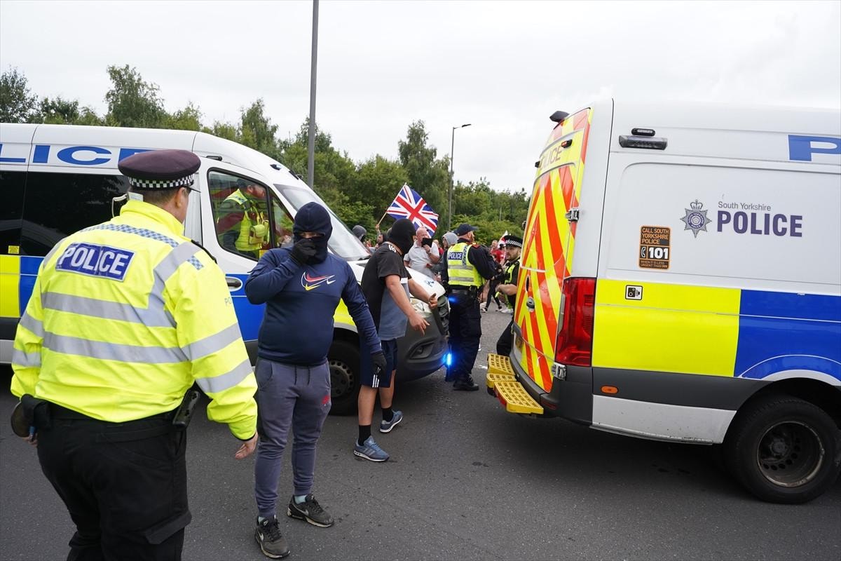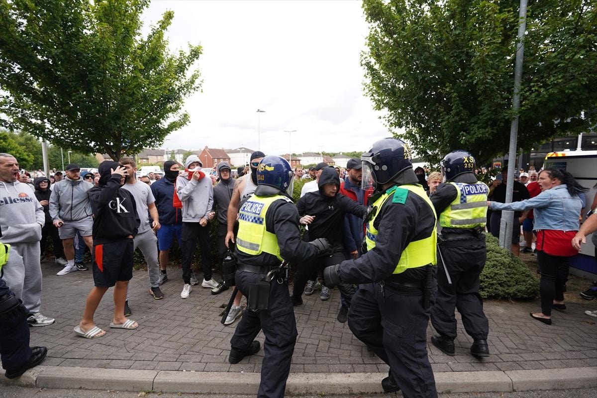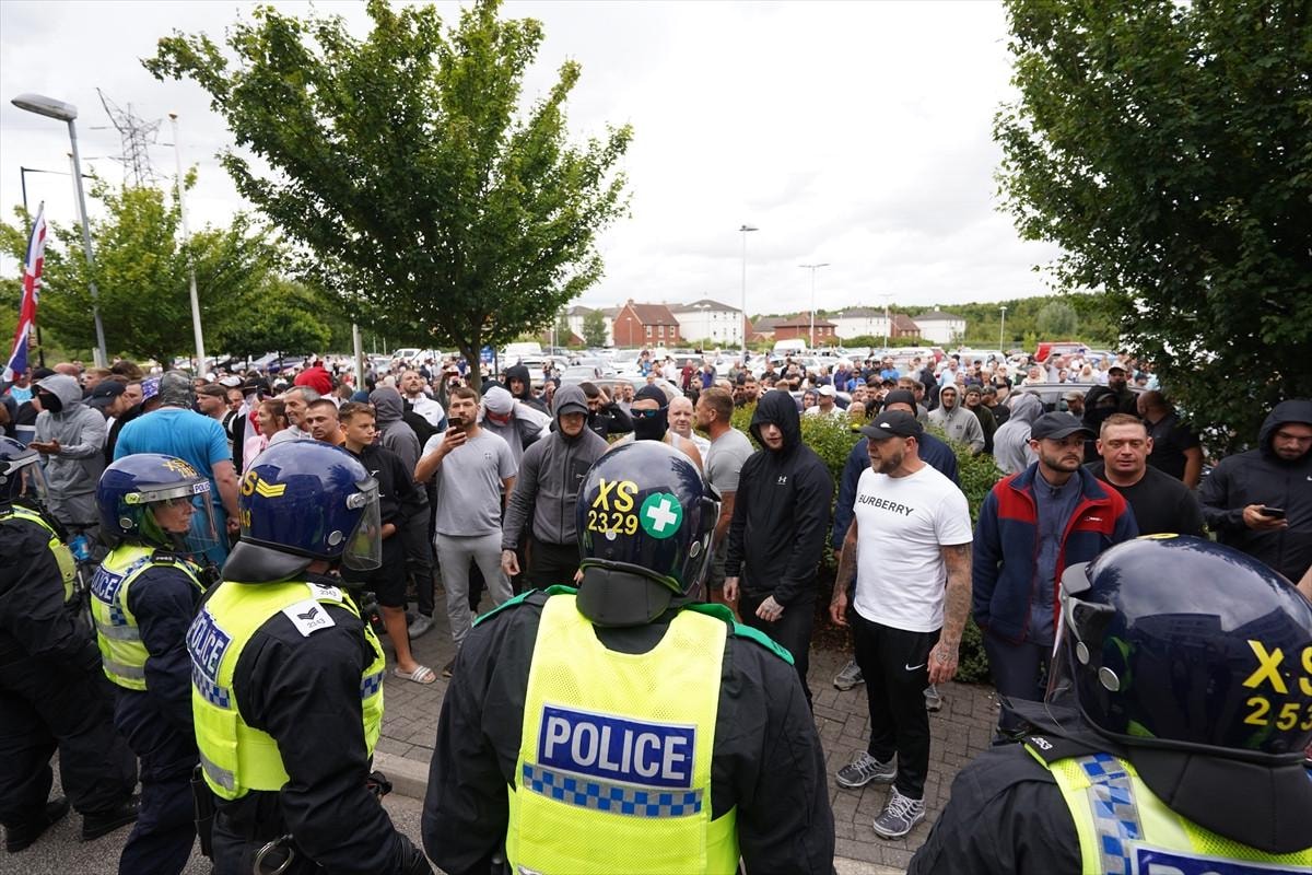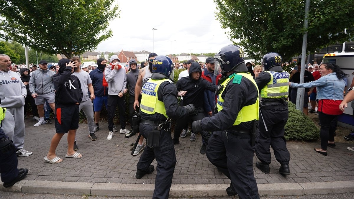 Ülkenin orta bölgelerinde yer alan kentte, aşırı sağcı İngiliz Savunma Ligi'nin (EDL) göçmen ve Müslüman karşıtı eylem çağrısına uyan yüzlerce kişi, sığınmacıların ve düzensiz göçmenlerin tutulduğu otelin önünde bir araya geldi.