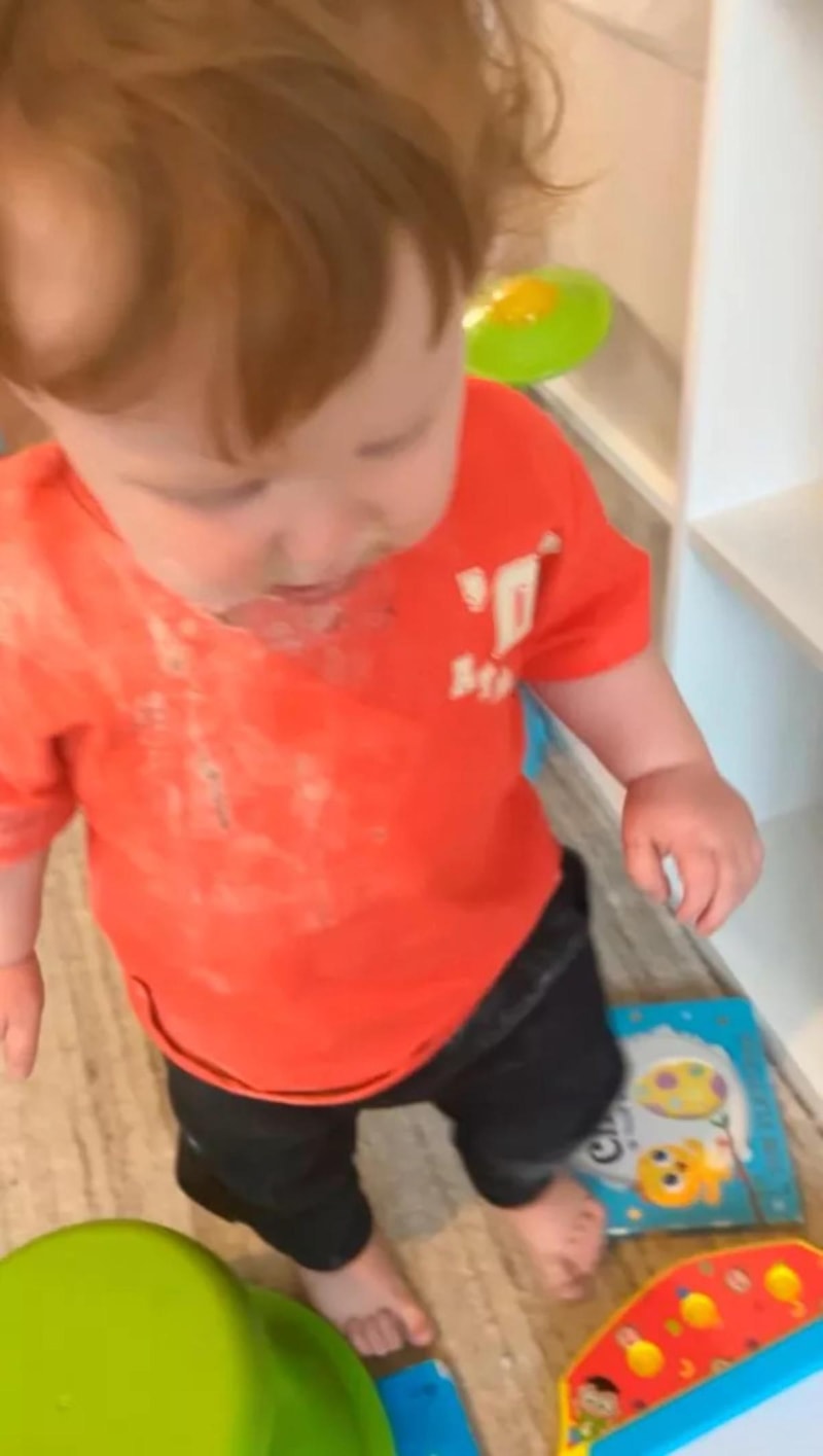 Genç kadın, 1 Nisan günü evinin oturma odasına gittiğinde çocuğunun bir şeyler yediğini gördü.