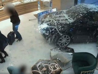 İngiltere'nin başkenti Londra'da 3 kişiden oluşan kasklı hırsızlar, ciple mücevher dükkanına girdiler.