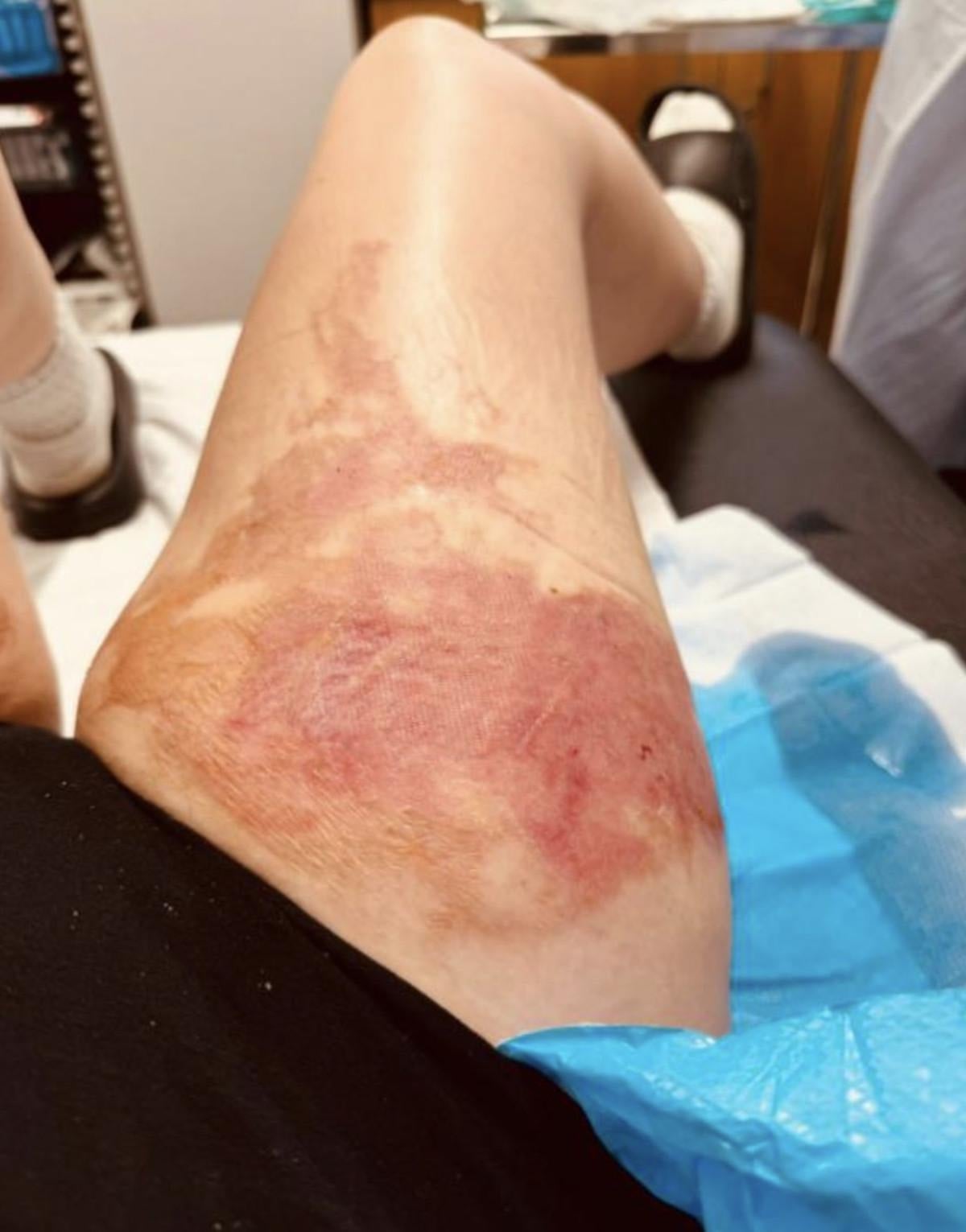 Hemen banyoya yönelen Hardy, 30 dakika boyunca soğuk duş aldı fakat bacağındaki yanma devam edince bir hastaneye gitti.