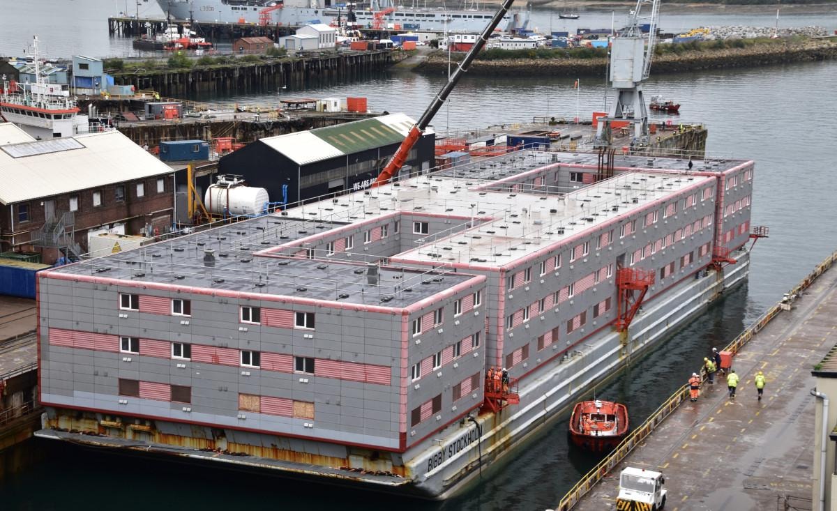 İngiltere'de kaçak göçmenlerin içinde tutulacağı gemi Bibby Stockholm Dorset'e ulaştı.