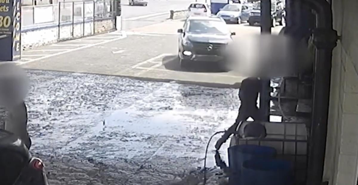 Güvenlik kameralarına yansıyan korkunç görüntülerde, Iraklı eski asker baba Nadir'in, araba yıkayan oğluna doğru aracını hızla sürdüğü görülüyor.