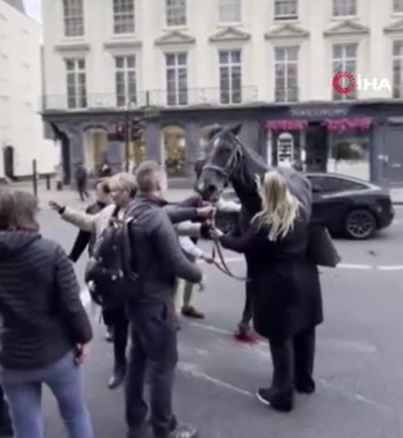 Atlardan biri Buckingham Palace Caddesi’ndeki bir araca çarptı, başka bir atın da bir tur otobüsüne çarptığı belirtildi. Görgü tanıkları, bir atın kanlar içinde olduğunu ifade etti.
