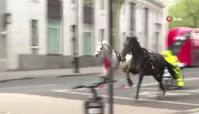Başkent Londra'da eğitim sırasında binicilerini fırlatarak kaçan Kraliyet atları sokakları birbirine kattı. Olay sırasında meydana gelen kazalarda 4 kişi yaralandı.