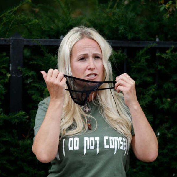 Göstericiler, maske dışında koronavirüs aşılarına ve salgını yaydığı gerekçesiyle 5G'ye de karşı çıktıklarını belirtti.