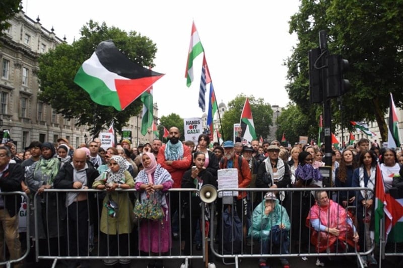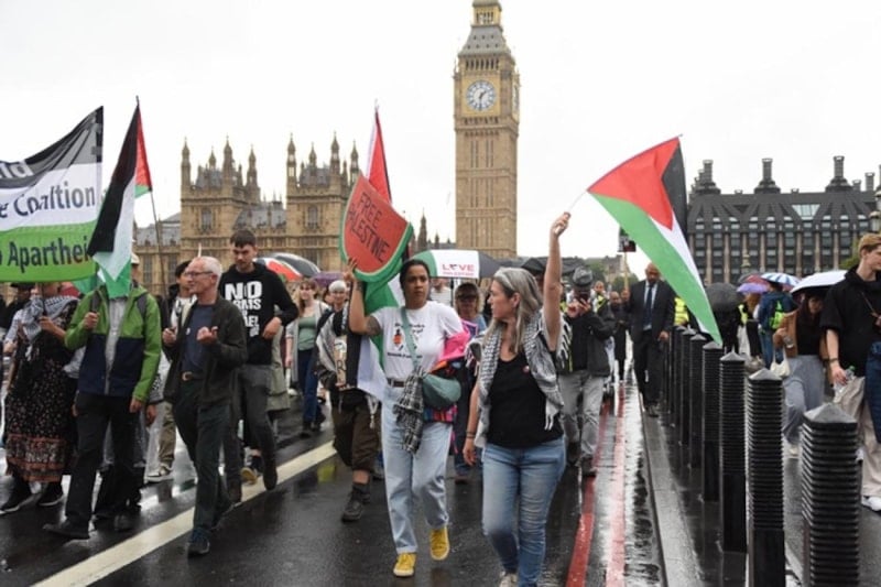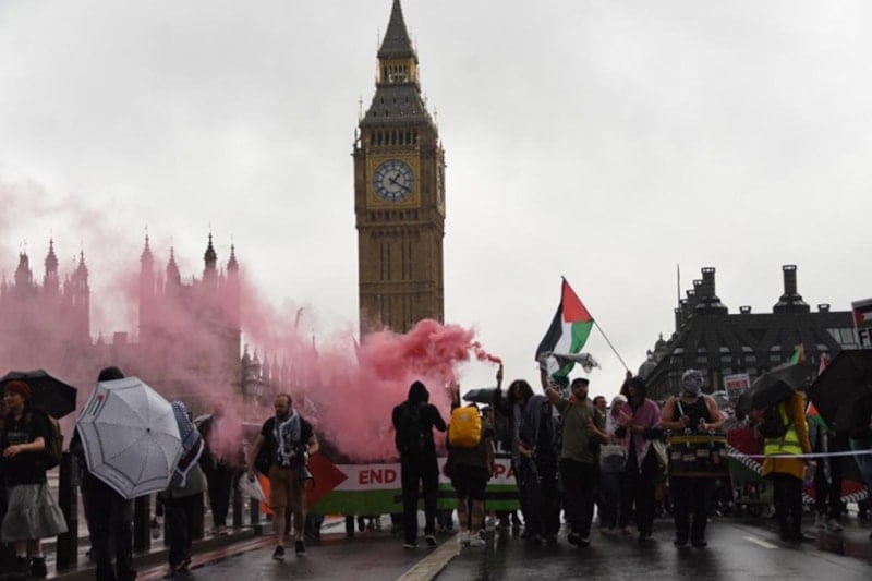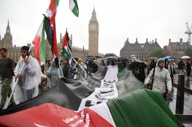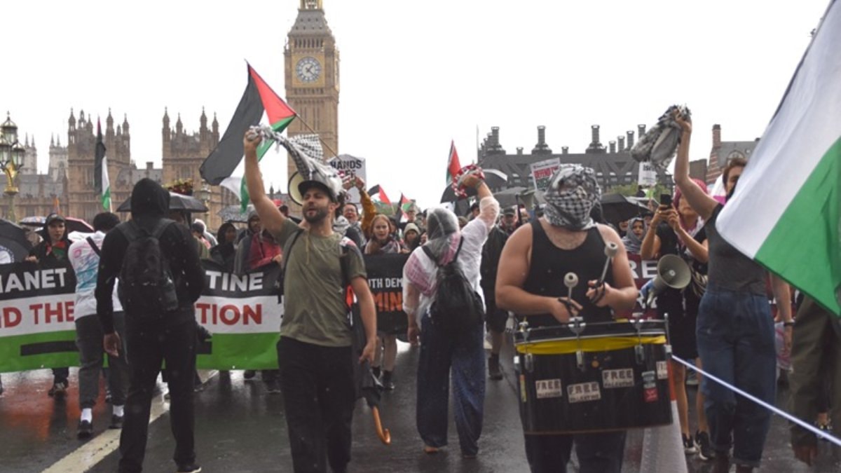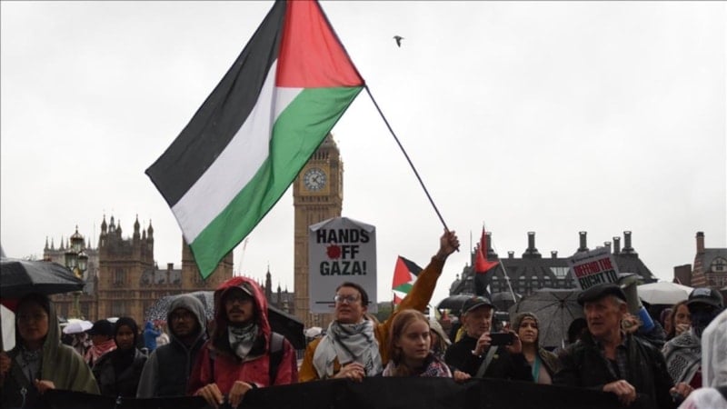 İngiltere'nin başkenti Londra'da, Embankment İstasyonu önünde toplanan on binlerce kişi, Filistin’e destek vermek amacıyla büyük bir yürüyüş gerçekleştirdi. Göstericiler, İsrail’in Gazze’ye yönelik saldırılarını, İngiltere’nin İsrail’e silah satışlarını ve ülkedeki Filistin yanlısı eylemcilere yönelik baskıları protesto etti.