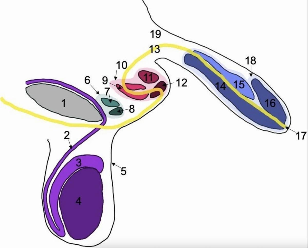 Bu küçük penislerin her biri, kendi sertleşme odacıklarına ve baş kısmına sahipti, ancak ana penisle aynı idrar yolunu paylaşıyorlardı. En küçük penis ise herhangi bir idrar yolu yapısına sahip değildi.