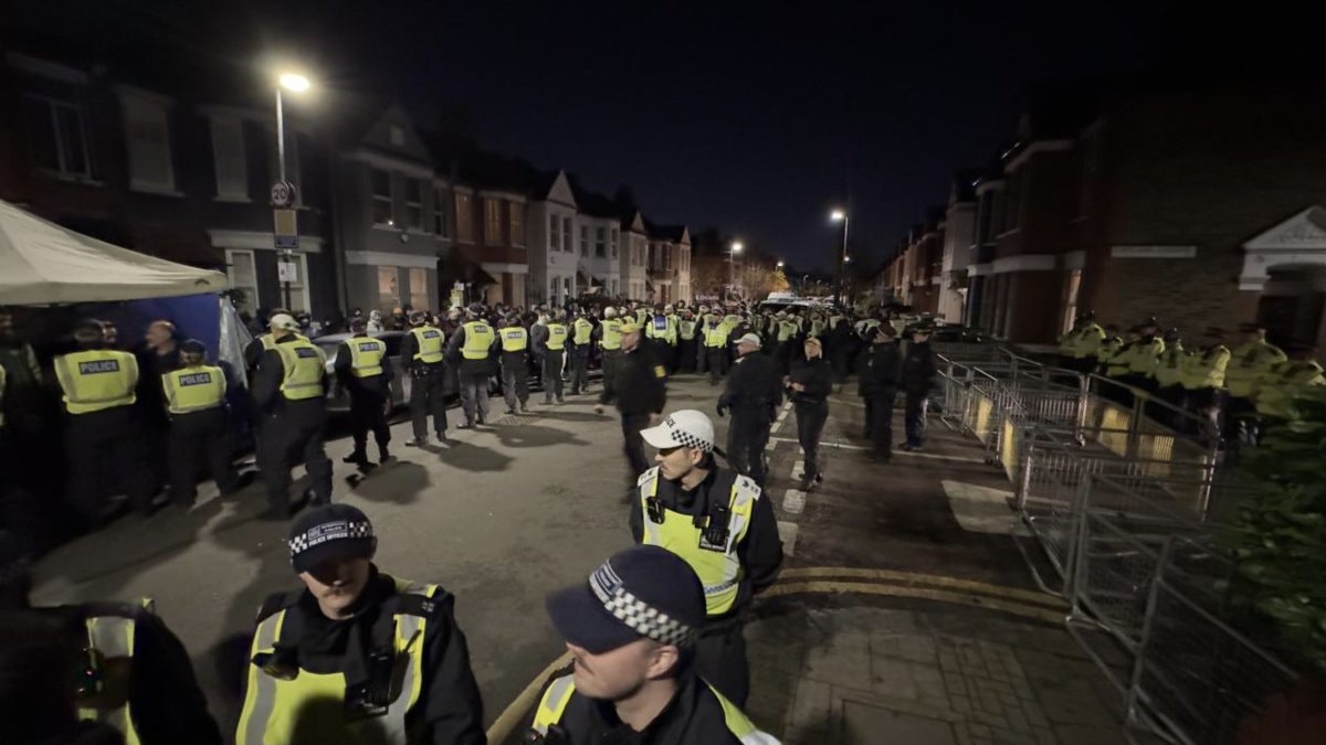 Haringey'deki toplum merkezi önünde bir araya gelen örgüt destekçileri ile bu noktada barikat kurmak isteyen polis arasında arbede çıktı.