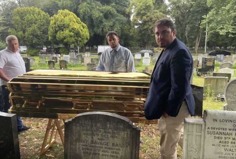Temmuz ayında hayatını kaybeden 69 yaşındaki Frank Thompson, milyon dolarlık altın tabutla gömüldü. "Roman Kral" olarak bilinen Thompson'ın cenazesi, lüks bir araçla 6 gün İngiltere'de gezdirildi.