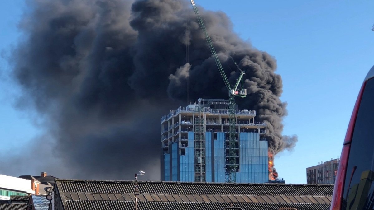 İngiltere'nin güneyindeki Reading kentinde inşaat halindeki 16 katlı bir binada çıkan yangın, büyük korkuya neden oldu.