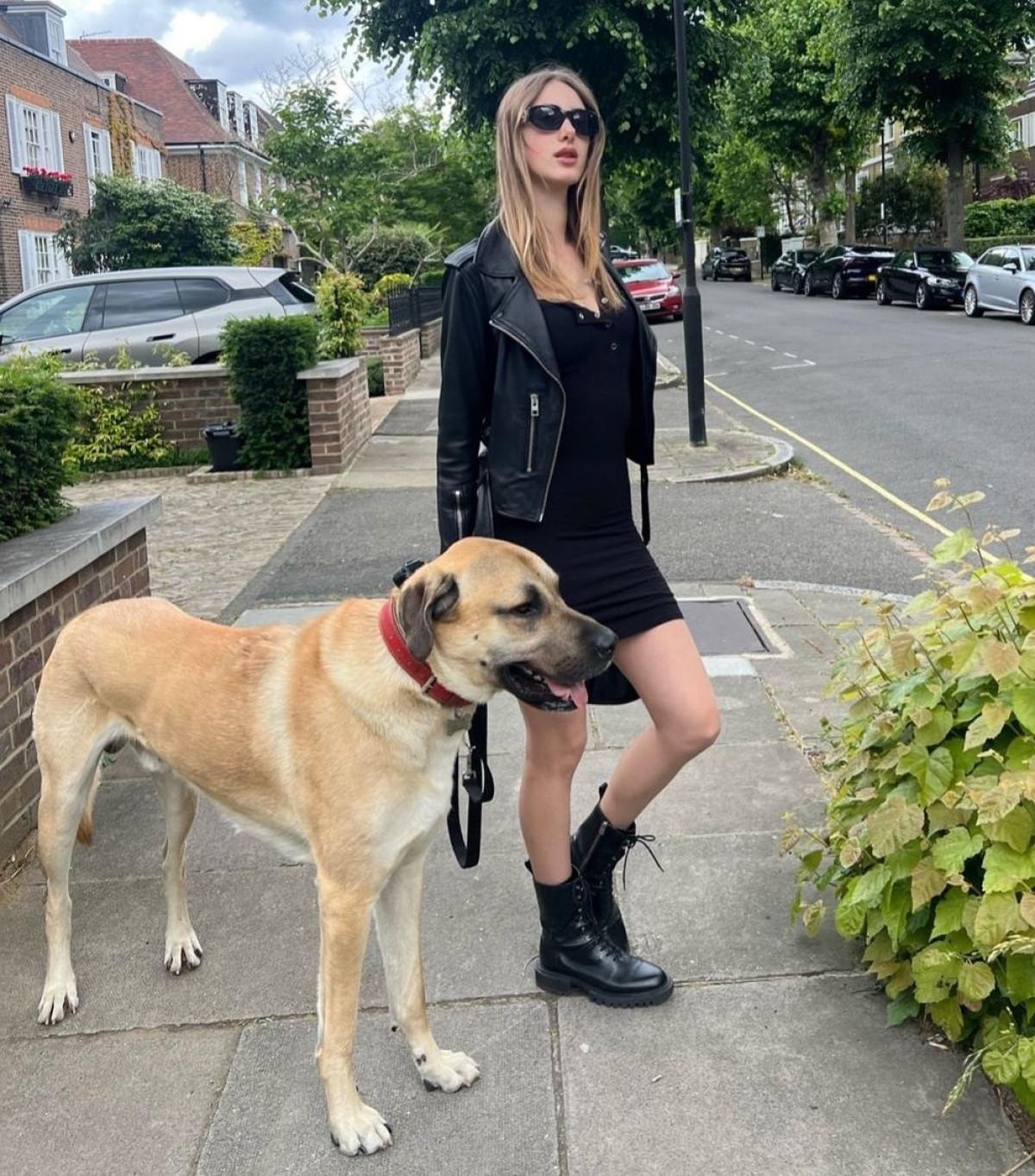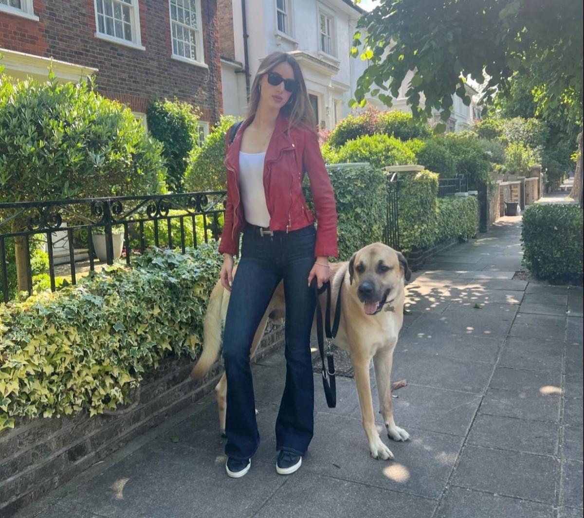 Isidora, Londra sokaklarında gezerken kangal köpeği Pasha'yı yanından bir an olsun ayırmıyor.