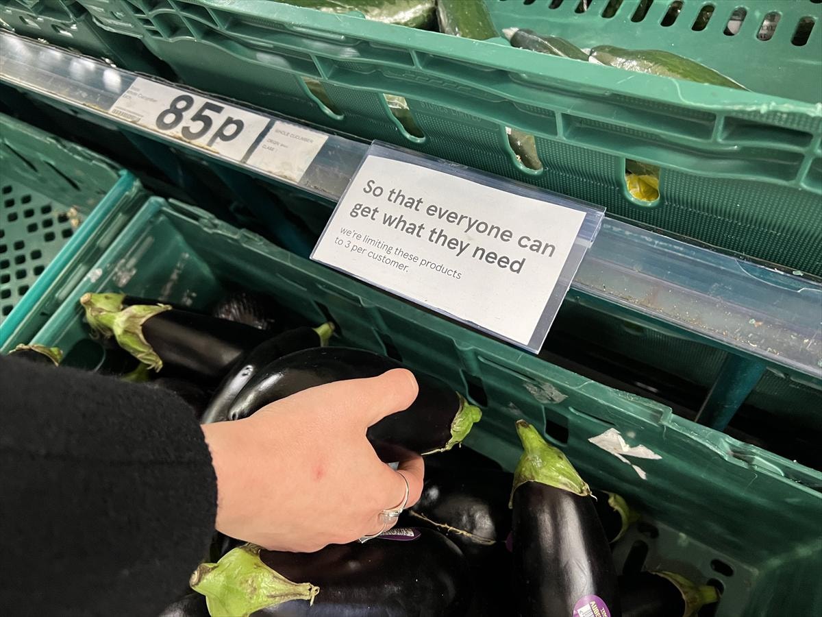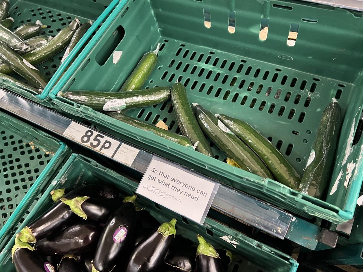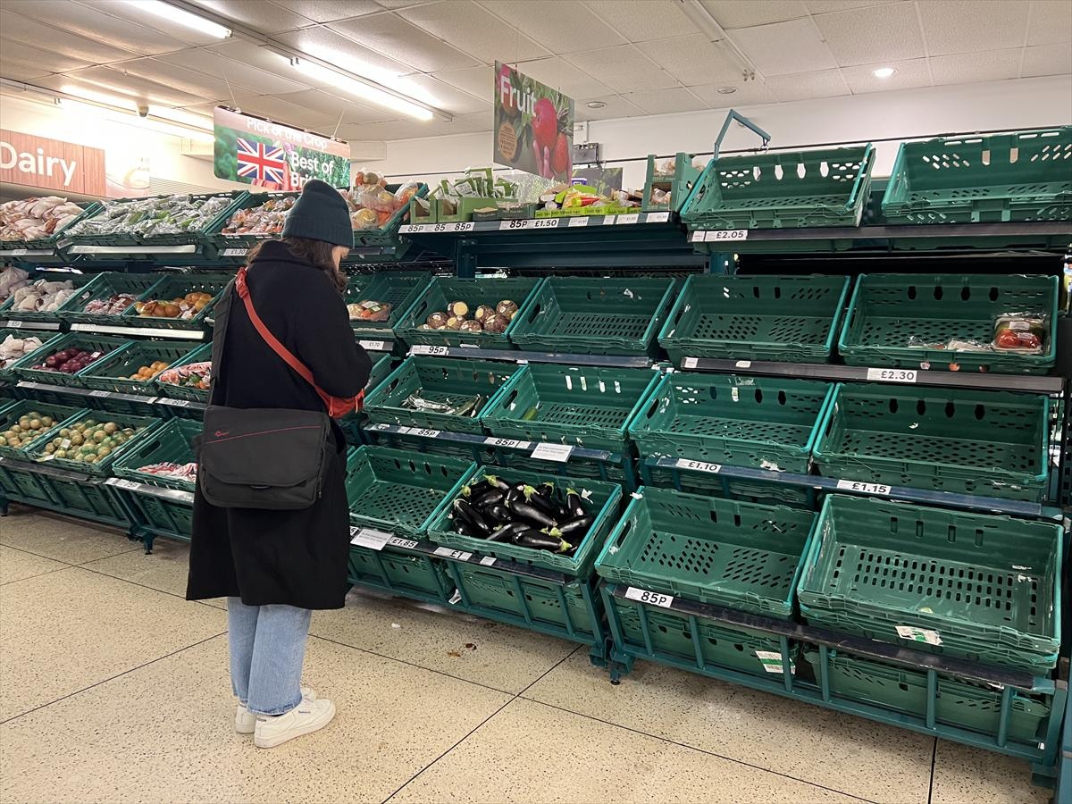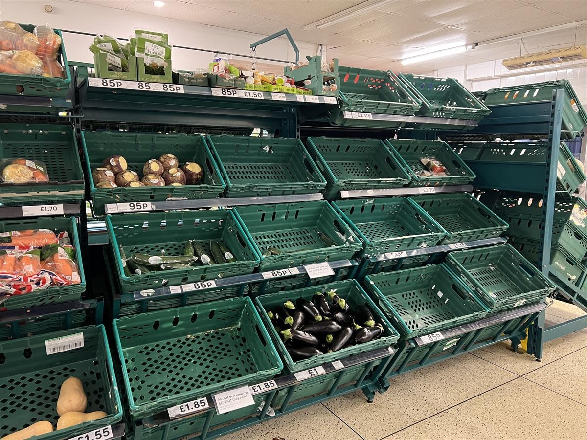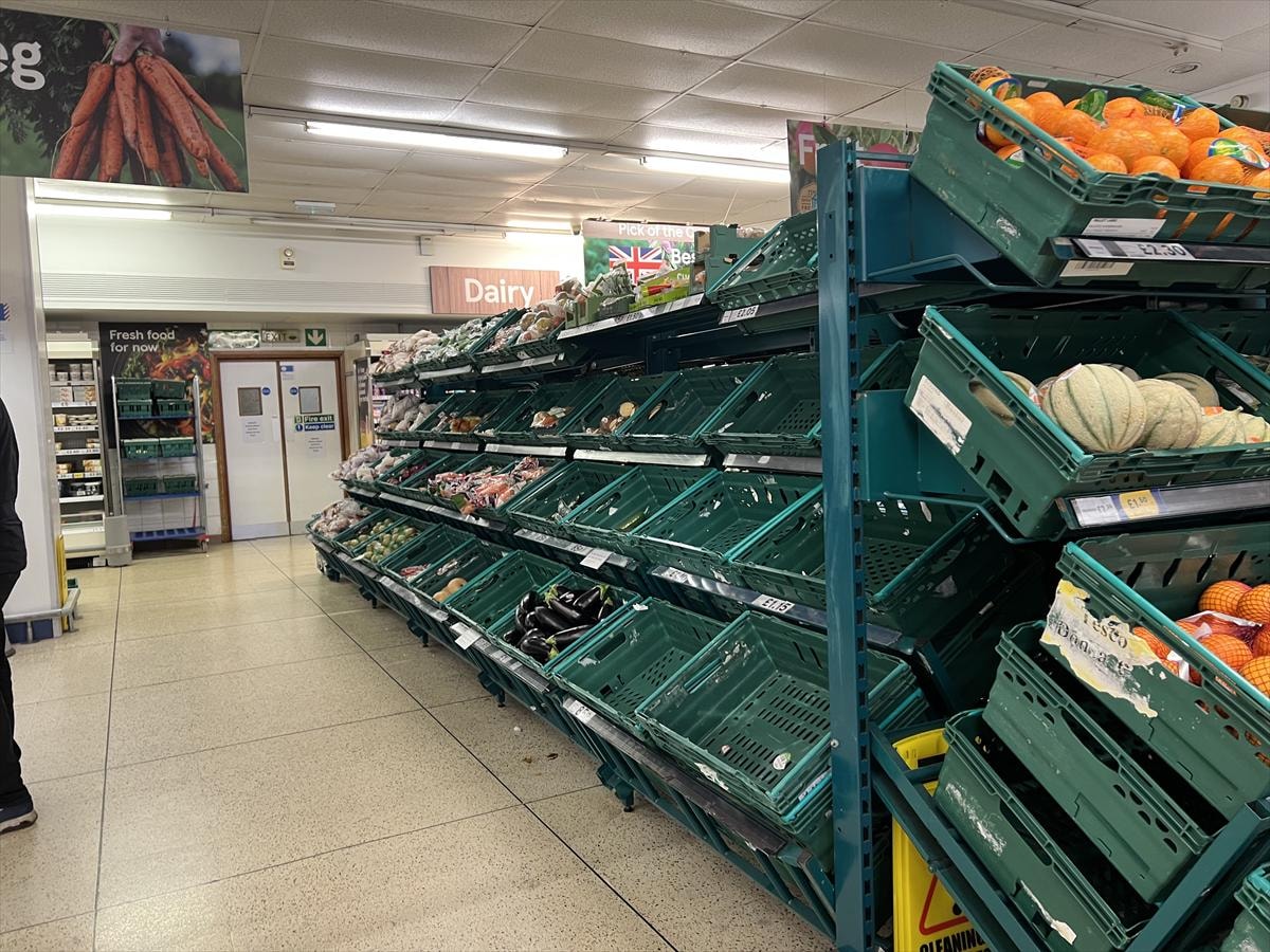 Ülkenin önde gelen süpermarket zincirlerinden Tesco, Asda, Morrisons ve Aldi, tedarik zincirlerinde yaşanan sorunlar nedeniyle meyve ve sebze ürünlerinde müşteri başına sınırlama getirirken, pek çok market raflarının boş kaldığı görüldü.