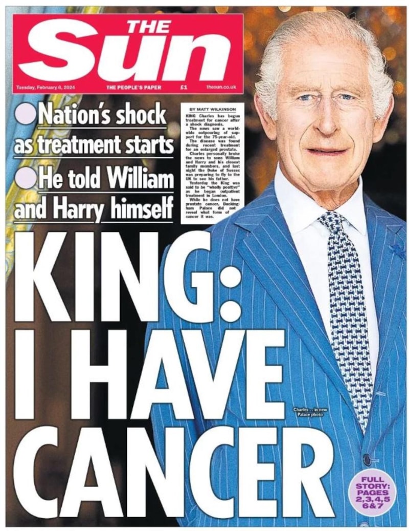 The Sun, "Kral: Kanser oldum" başlığına yer verdiği haberinde, tedavinin başladığını, hastalıkla ilgili gelişmenin Birleşik Krallık'ı "şoka uğrattığını" kaydetti.