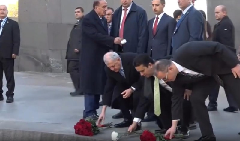 Armenpress'in haberine göre, Reşid, beraberindekilerle birlikte anıta çelenk koydu ve çiçekler bıraktı.