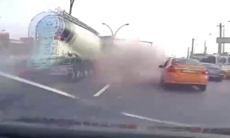 Yolda seyir halinde olan bir başka aracın kamerası tarafından kayda alınan görüntülerde, bir tırın hızla önüne kattığı araçları adeta kağıt gibi ezdiği görüldü.