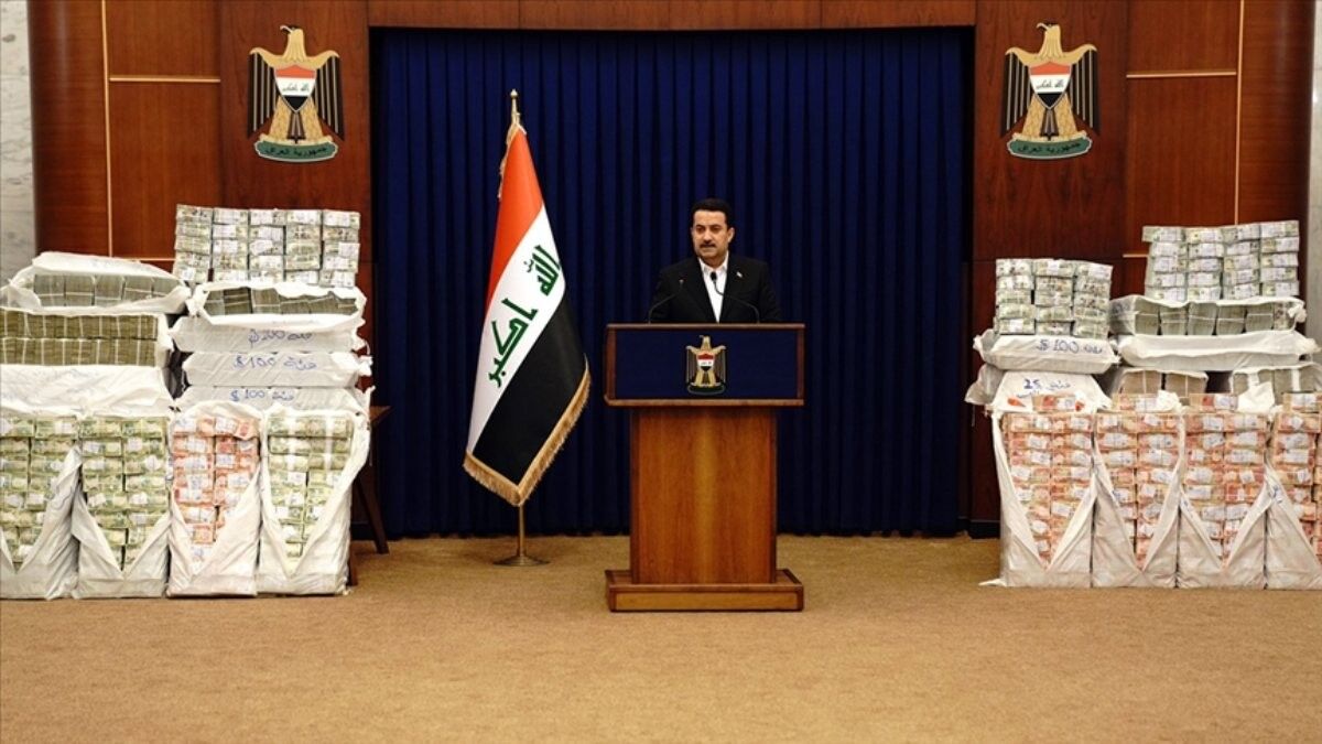 Irak Başbakanı Muhammed Şiya es-Sudani, başkent Bağdat'ta düzenlediği basın toplantısında, iade edilen paralarla gazetecilerin karşısına çıktı.