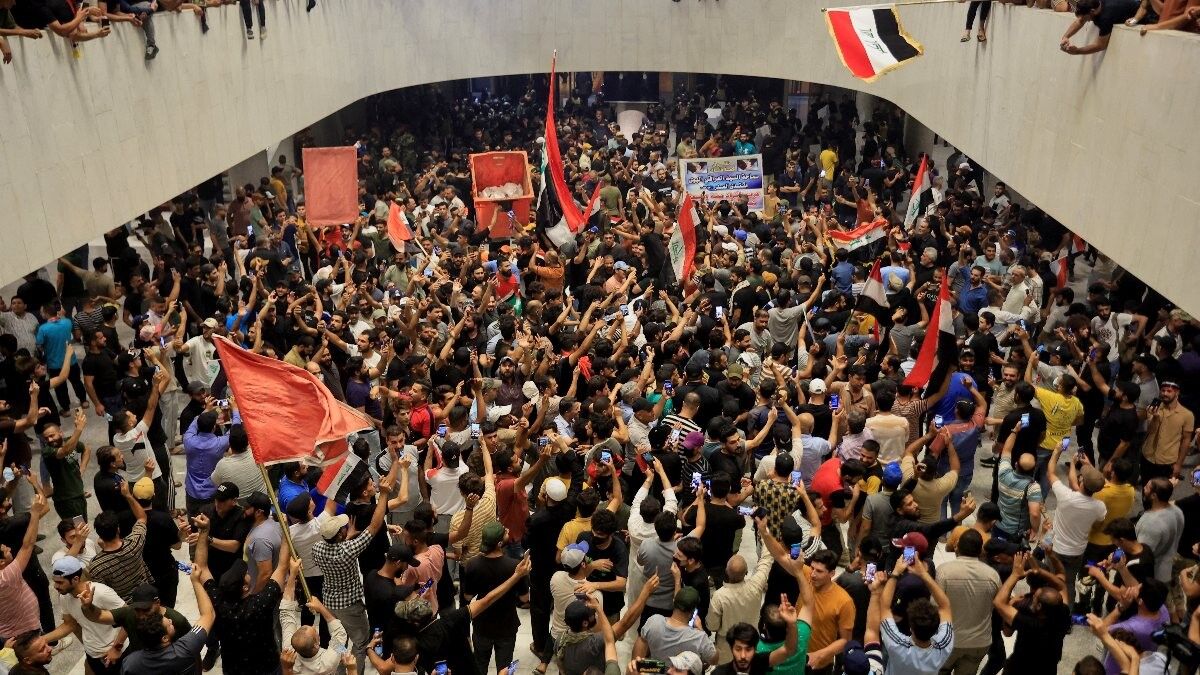 Şii lider Mukteda Sadr’ın çağrısı üzerine başkent Bağdat’taki korunaklı Yeşil Bölge’de bulunan parlamento binasını basan yüzlerce Sadr destekçisi, Yeşil Bölge ve parlamento binasını “Seyidin emrini yerine getirdik” sloganları ile terk etti.