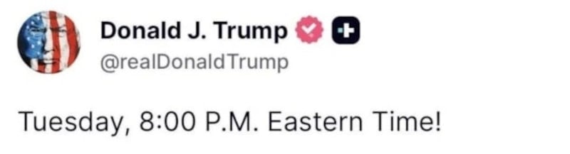 Daha önce Hürmüz Boğazı'nı 48 saat içinde açmaması durumunda İran'ı tehdit eden Trump, paylaşımında, "Salı günü ABD Doğu Yakası saatiyle 20.00'de (Türkiye saatiyle 8 Nisan Çarşamba 03.00)" ifadesine yer verdi.