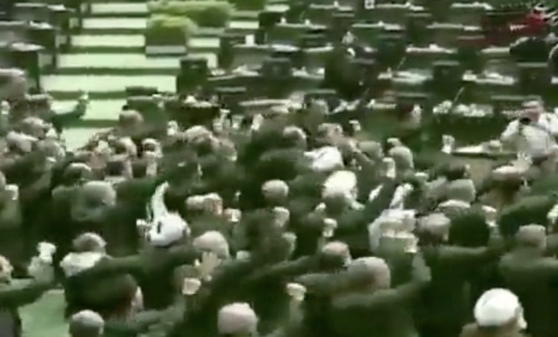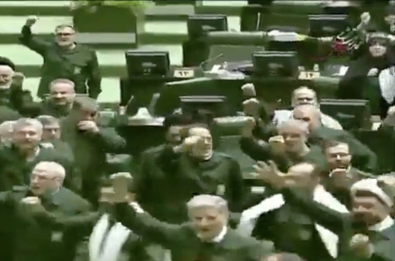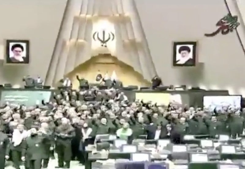ABD'nin olası askeri müdahalesine ilişkin tartışmalar sürerken İran Parlamentosu'nda dikkat çeken bir olay yaşandı.