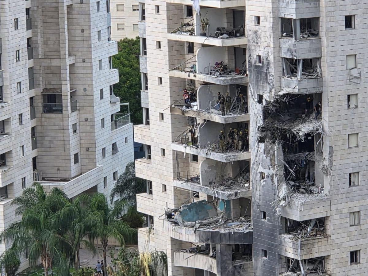 Bat Yam kentine düzenlenen saldırılar sırasında balistik füzenin isabet ettiği bir apartman çöktü.