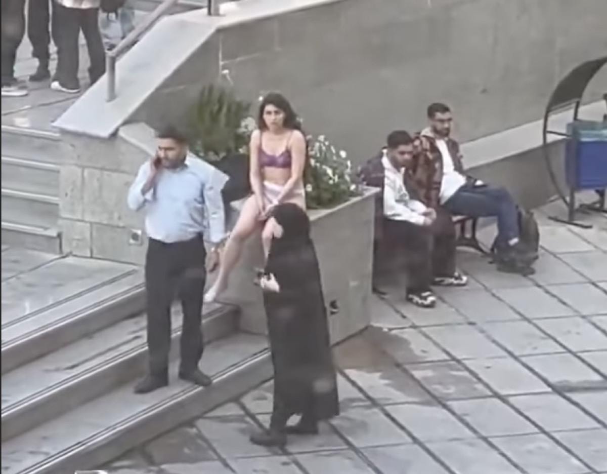 Başkent Tahran'daki Azad Üniversitesi'nde bir kadın öğrenci, kampüsün ortasında bir anda kıyafetlerini çıkardı.