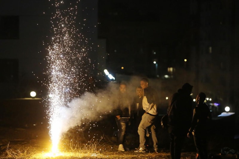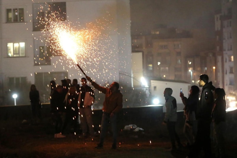 Kentte ateşlenen havai fişekler nedeniyle gökyüzünü adeta duman bulutu kapladı. Hemen her sokak ve caddede kullanılan havai fişekler ve patlayıcı maddeler nedeniyle ortalığı barut kokusu sardı.