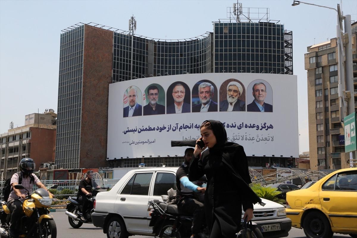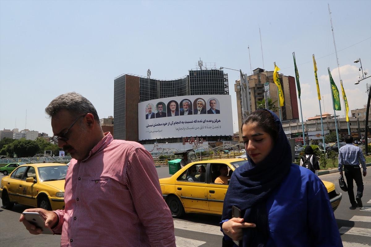 Başkent Tahran'daki cadde ve sokaklara, seçime katılacak adayların fotoğraflarının yer aldığı afiş ve posterler asıldı.
