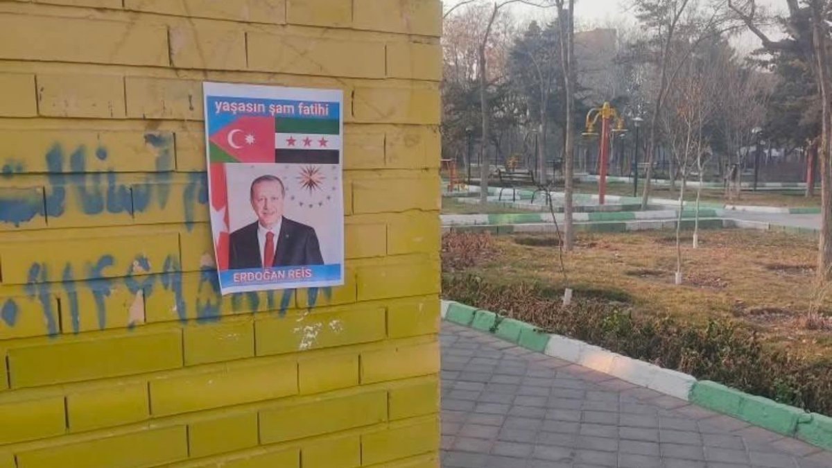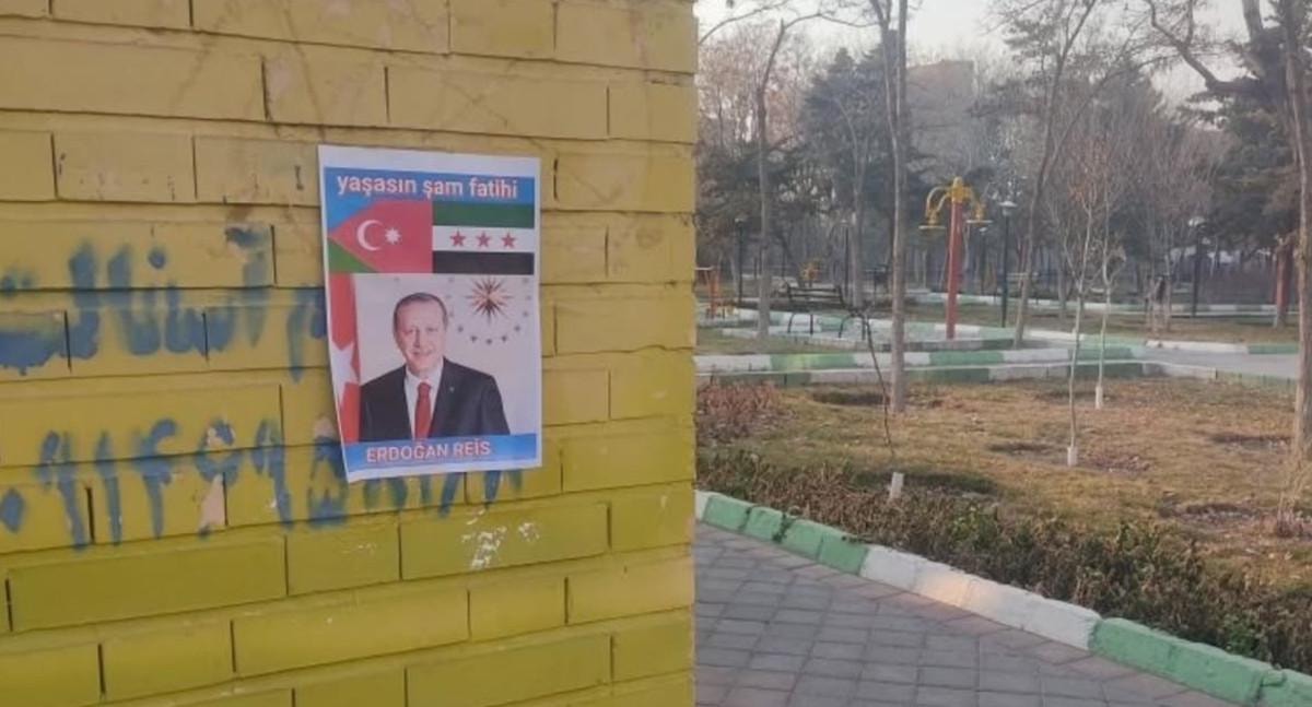 Afişlerde ise "Şam Fatihi Erdoğan" ve "Karabağ Kahramanı Aliyev" yazıları dikkat çekti.