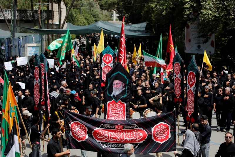 Tahran Üniversitesi Camisi’nde yapılan matem törenlerinin ardından binlerce kişi, Filistin Caddesi üzerinde bulunan Hamaney’in konutuna doğru yürüyüşe geçti.