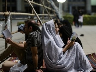 Ramazan ayının 21. gecesi aileleriyle birlikte Tahran'daki Musalla Camisi'ne akın eden yüzlerce İranlı, birlikte ibadet etti.