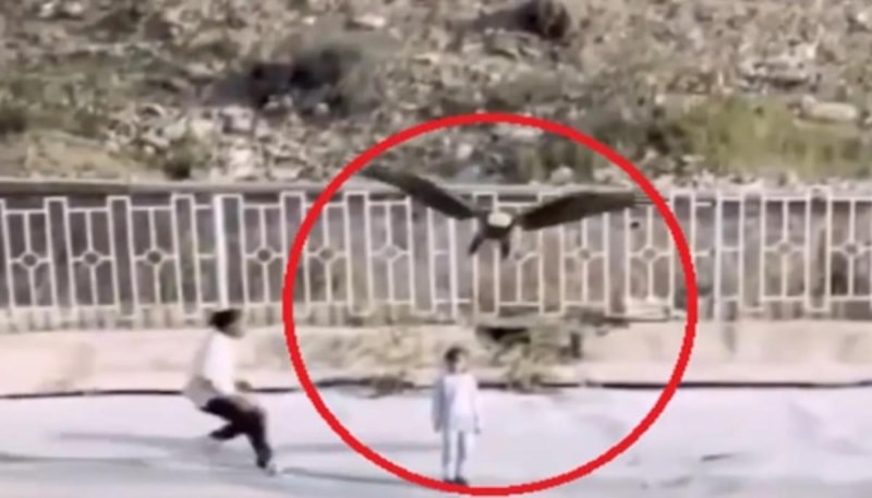 Kel kartal İran’da küçük kızı neredeyse kaçırıyordu, yoldan geçen birinin hızlı müdahalesi onu kurtardı.